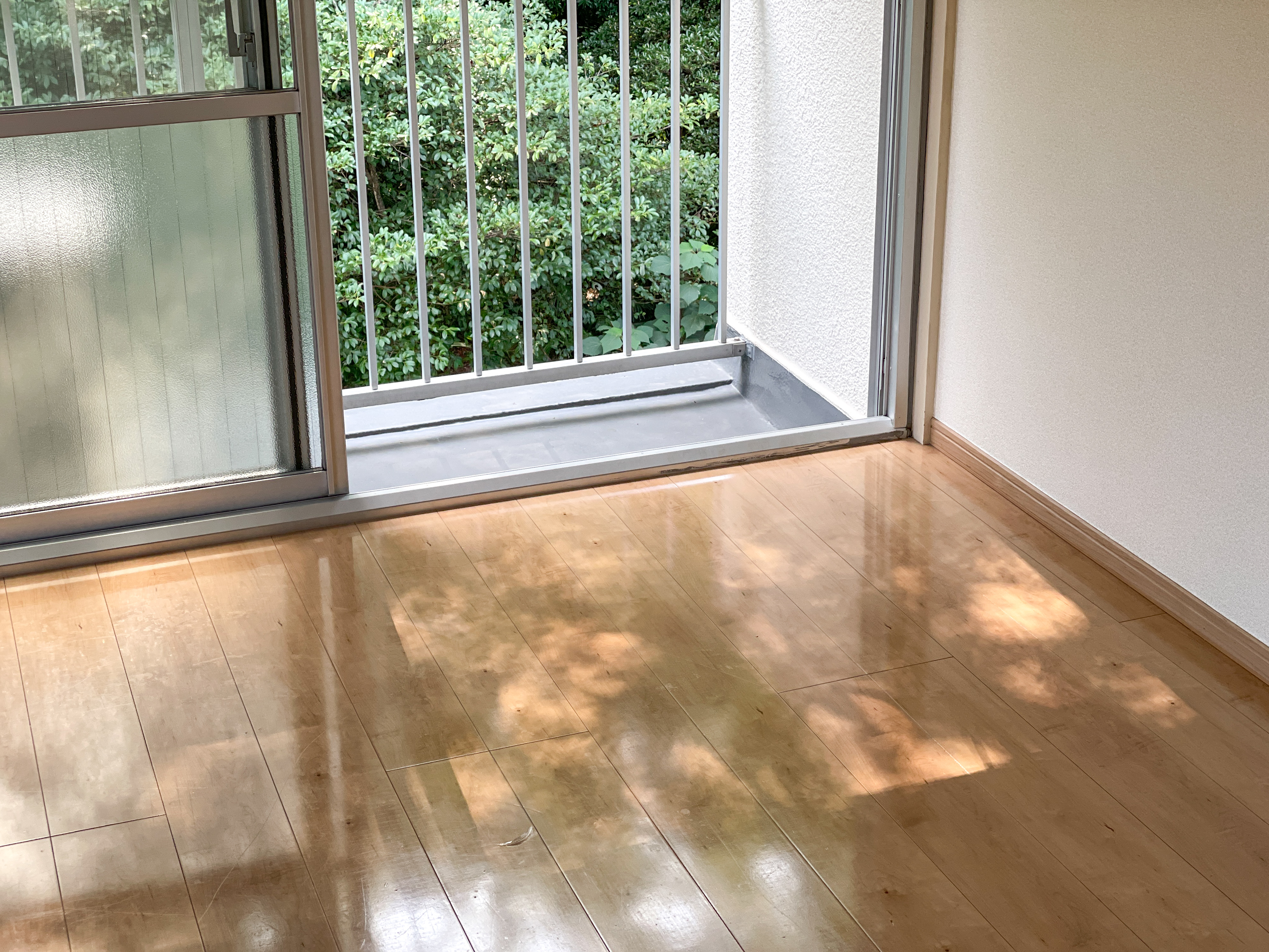 ベランダ越しの緑がキラキラと室内に。