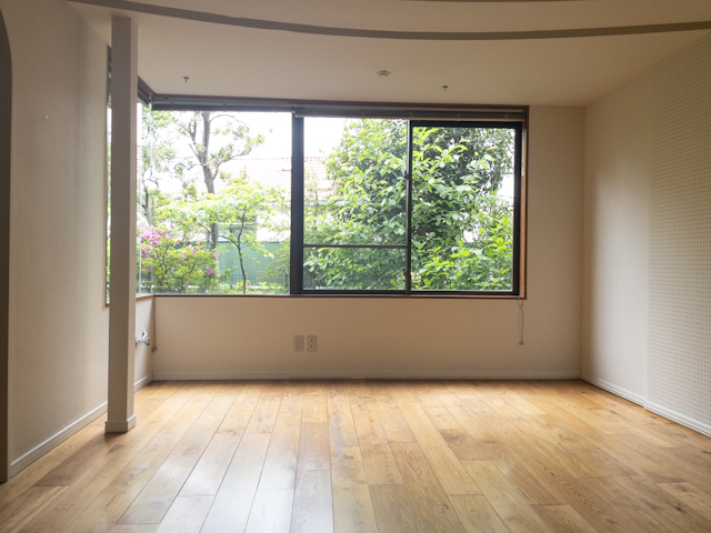 2面の窓いっぱいに広がる緑が印象的なお部屋。