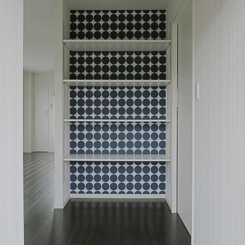 クロスが印象的な収納棚
