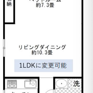 大きなワンルームで無駄なスペースがないので家具の置くにも苦労しないかもしれませんね。