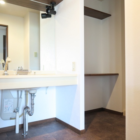 洗濯機置場の造作の棚も嬉しいポイントです。
