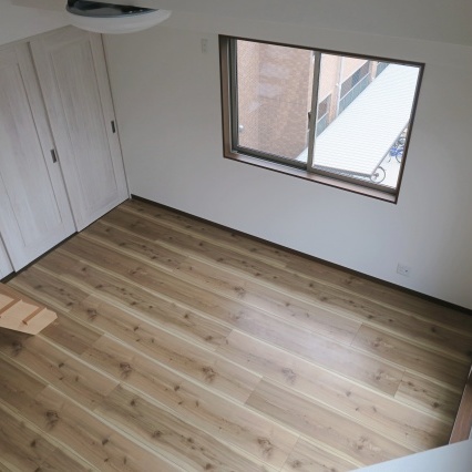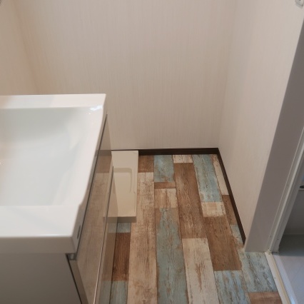 こちらもポップな木目調フロアシートでお洒落に
