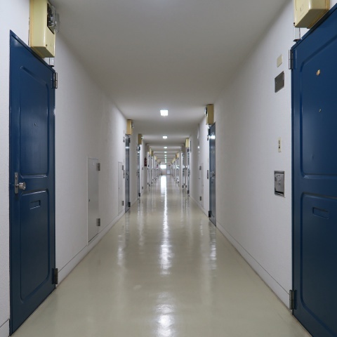 綺麗に修繕されて清潔感がある廊下を抜けて室内へ