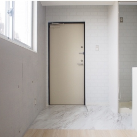 玄関からキッチンは大理石風のフロアでゾーニングして