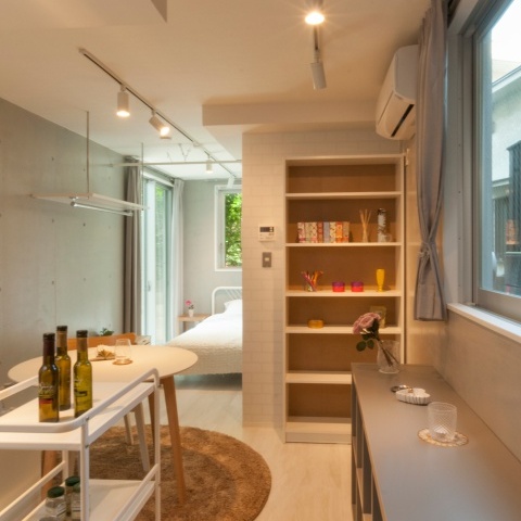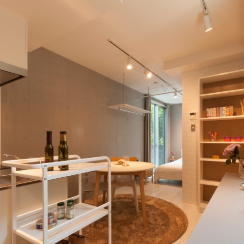 シェルフ等で仕切って使えばベッドスペースを作ることもでき