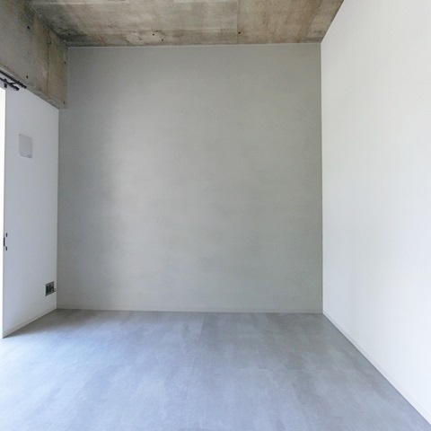 白い壁に、一面だけざらざらした塗り壁が