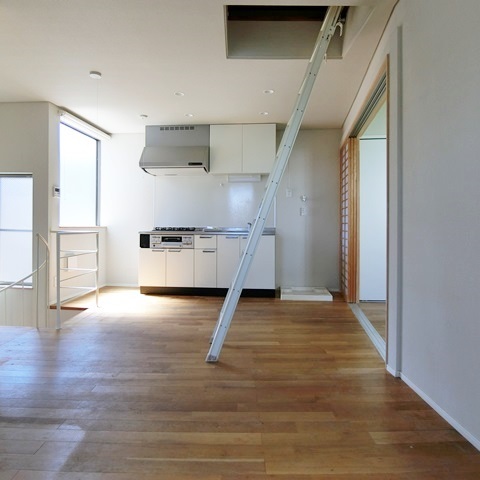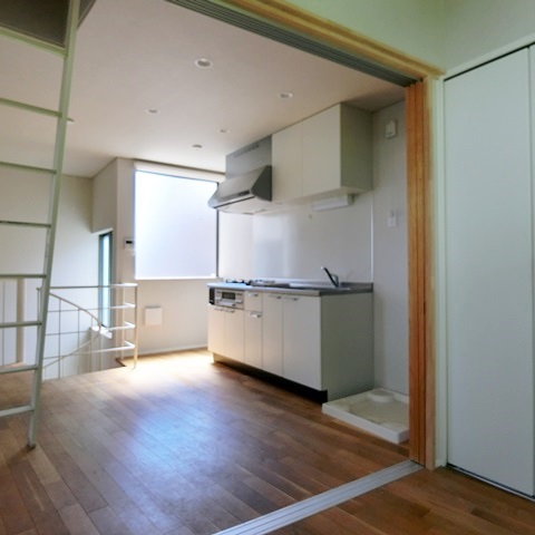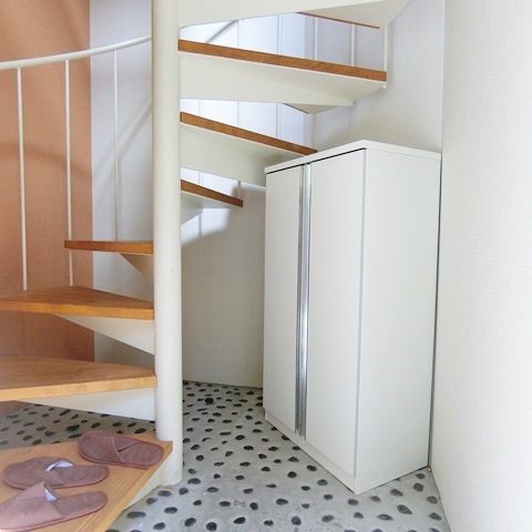 一階は螺旋階段とシューズボックスがある玄関のみ。