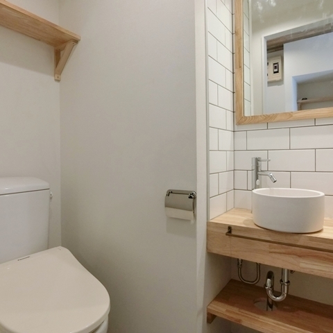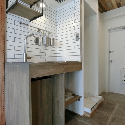 キッチンや室内洗濯機置き場、シャワールーム、洗面台も完備。
