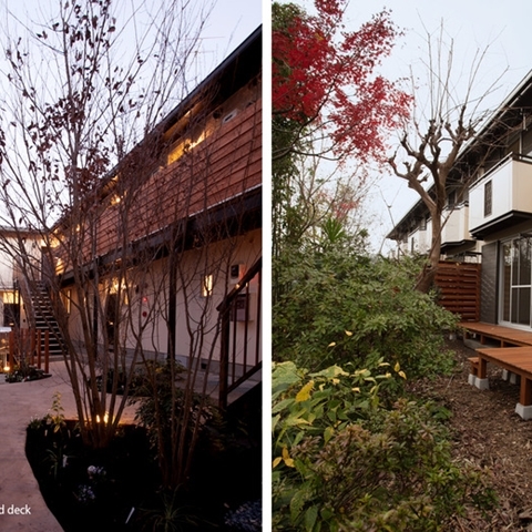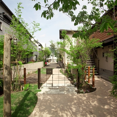 エントランスとそのアプローチには、雑木林と植えられ、四季の便りを感じます。