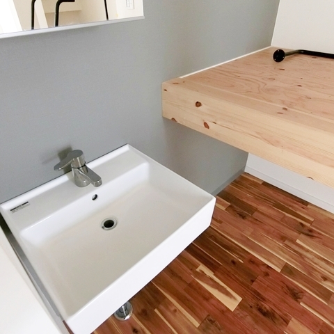 グレーのアクセントクロスが可愛すぎない大人なな雰囲気に仕上げてくれています。