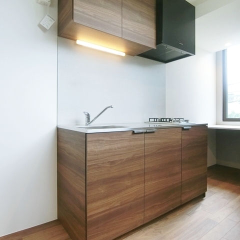 木目調のキッチンのデザインがお部屋の雰囲気に合う。