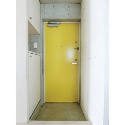 コンクリートに鮮やかな黄色い玄関ドアが映えますね。