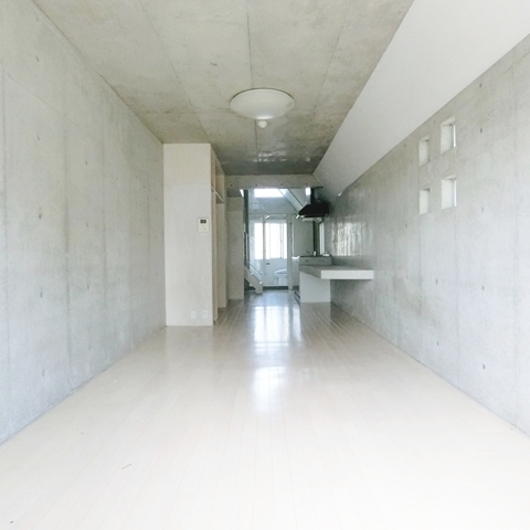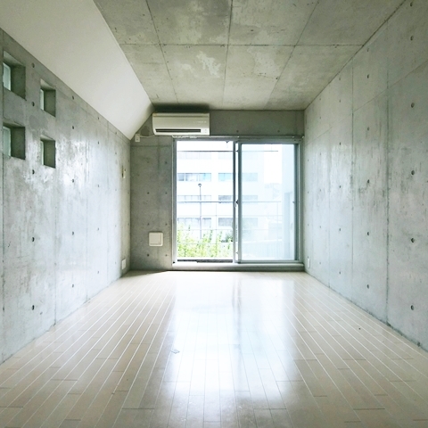 外観からコンクリート打ちっぱなしでデザイナーズマンションと思わせるつくり、そして廊下も内装もコンクリートで一貫されてます。