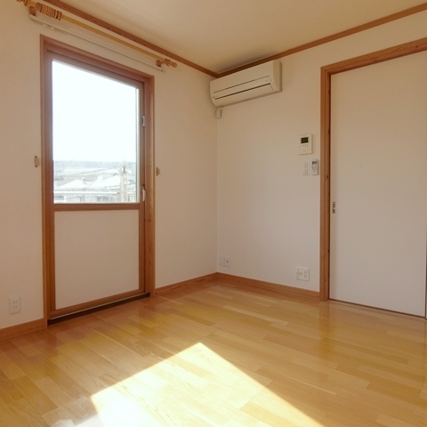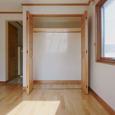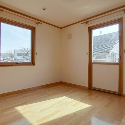 左の扉を開けると、約8畳の二面採光のお部屋が広がります。