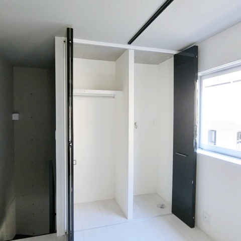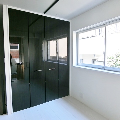 クローゼットのドアは黒光りする、まるで鏡のような磨き上げた鏡面です。