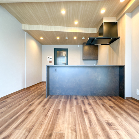 ブルーのアクセントカラーが映えるこちらのお部屋。