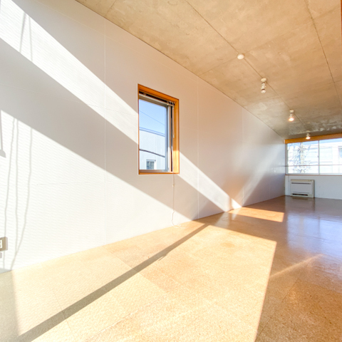 約15帖のリビングは、ギャラリーのような縦長スタイル。