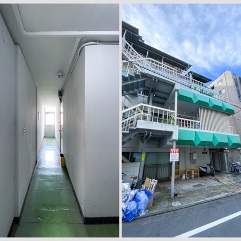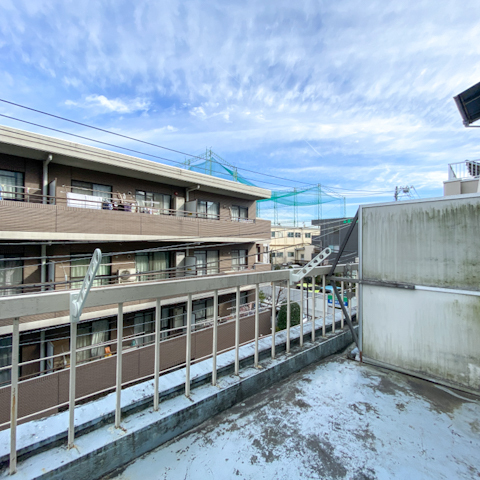 専用バルコニーは部屋外にあり、マンション共有部を通ります。