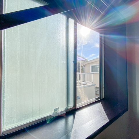 7帖の洋室に開口部がありますが、こちらの外はお隣さんのバルコニーのようです。。