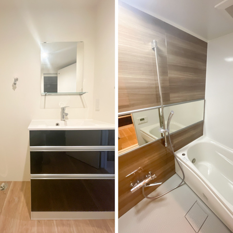 トイレ、独立洗面台、洗濯機置場、お風呂。