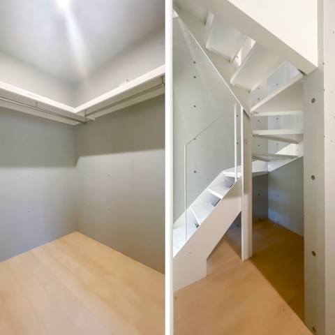 また、ウォークインクローゼットの中から階段側へ抜けられる作り。