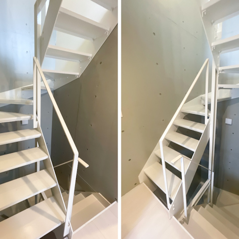 お部屋に入るとまず目に飛び込んでくるのは白い階段!