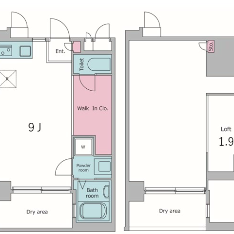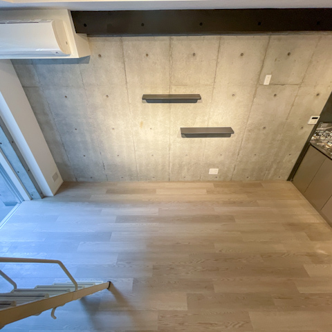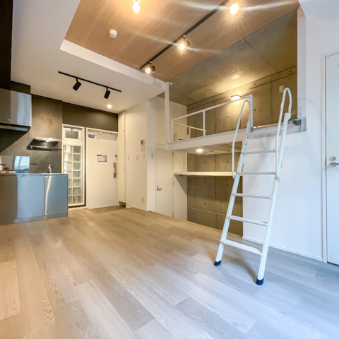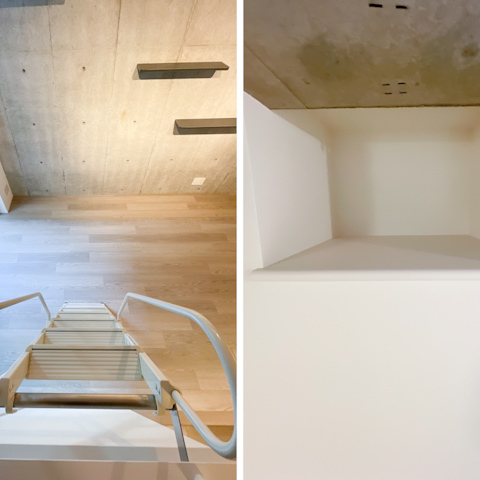 ワンルームなのに下に向かう階段があり、さらに上へと続くロフトもあり。