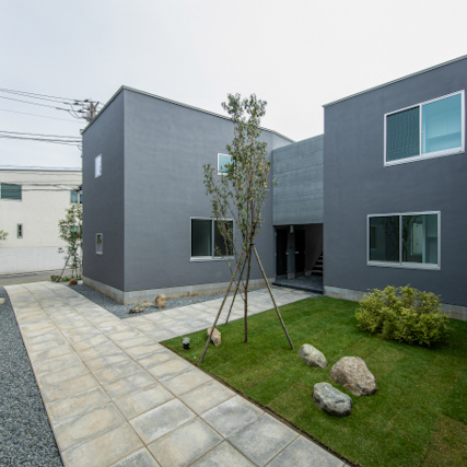 コンクリート平板と砂利で構成されたアプローチは、思わず足を踏み入れたくなるような引力を持っています。