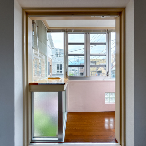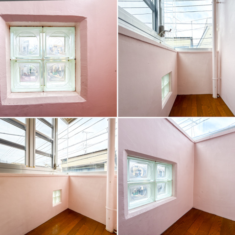 レトロかわいいピンク色で、ちょこっとガラスブロックゾーンも。
