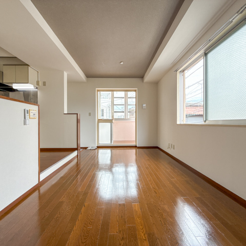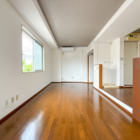 キッチンスペースとは扉こそないもののちょっとした段差で区切られているため生活スペースは十分確保できそう。