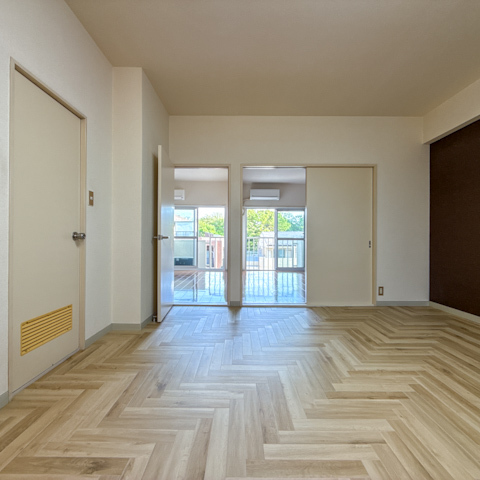 リビングから繋がる洋室二つは窓の外に緑と青空が広がっていました。