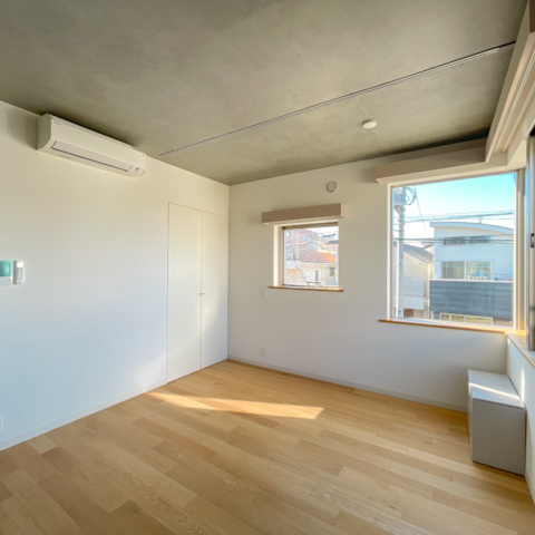 光が差し込むたびに、無機質な素材が柔らかな表情を見せ、空間に奥行きを与えます。