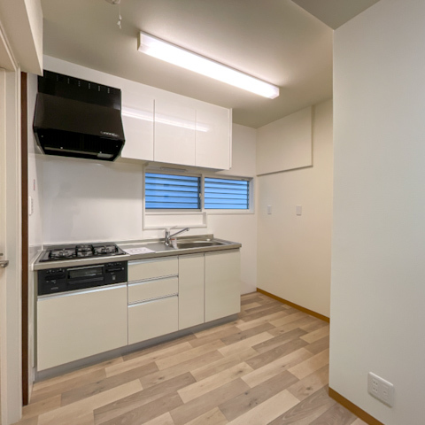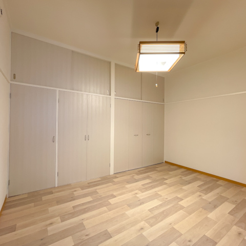 洋室は白壁と新しい床材がモダンな印象を与え、収納もたっぷり。