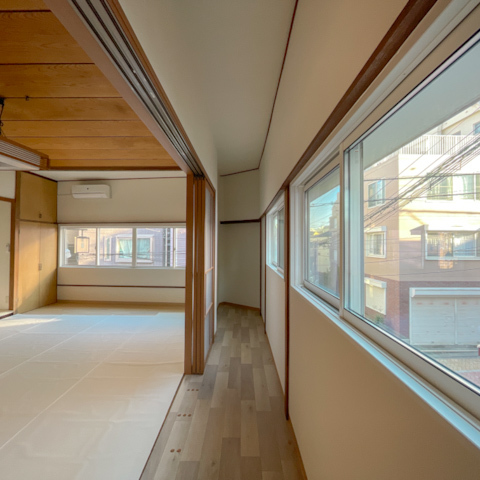 引き戸を開ければ縁側のような抜け感が生まれ、風が心地よく通り抜けます。