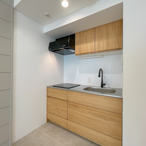 キッチンは木目調の扉がナチュラルで、料理をする時間が心地よいひとときに。
