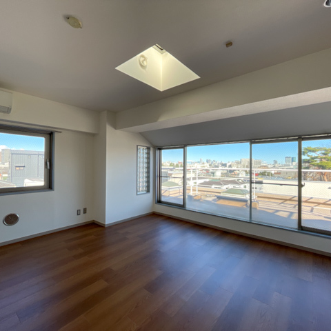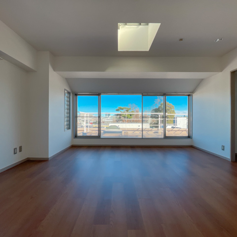 室内に足を踏み入れると、まず目に飛び込むのは大きな窓と、その先に広がるルーフバルコニー。