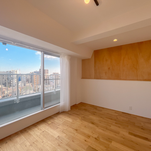 空へ向かって開けた大きな窓、シンプルでしなやかな居室、そしてシェアハウス的な要素が自然に溶け込む共用空間。