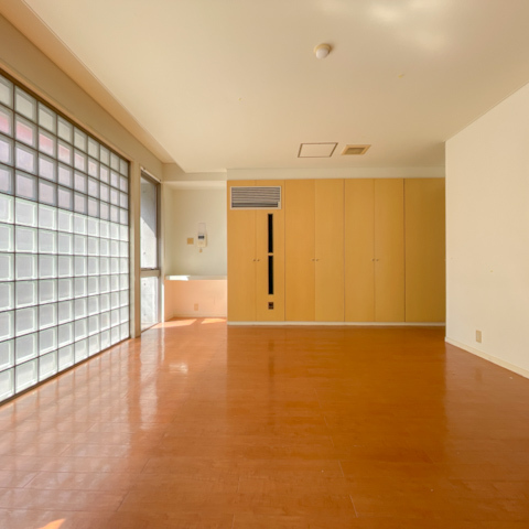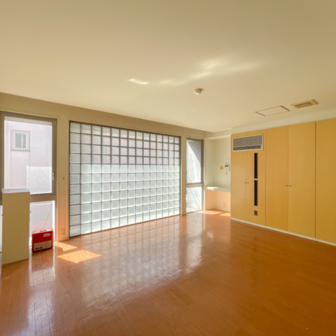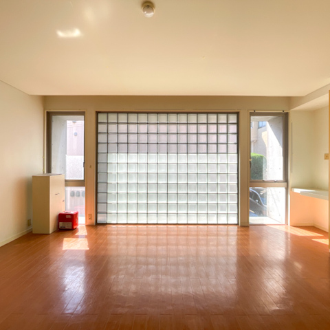 リビングダイニングに入ると、まず目に映るのが壁一面のガラスブロック。