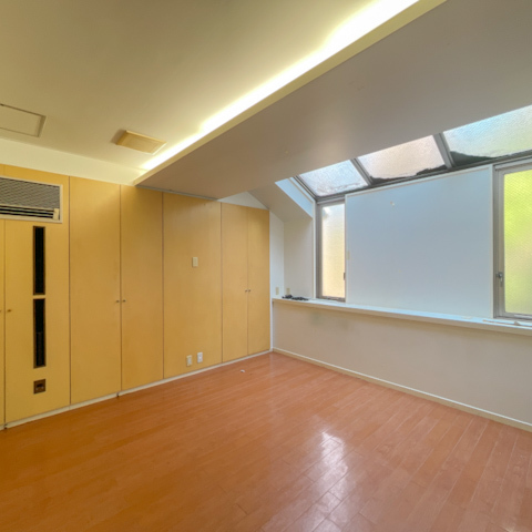 天高とモザイク窓からの柔らかな光は、寝室としてはもちろん、書斎やワークスペースとしても使いやすく、SOHO利用が相談可能なのもこの部屋ならではの魅力です。