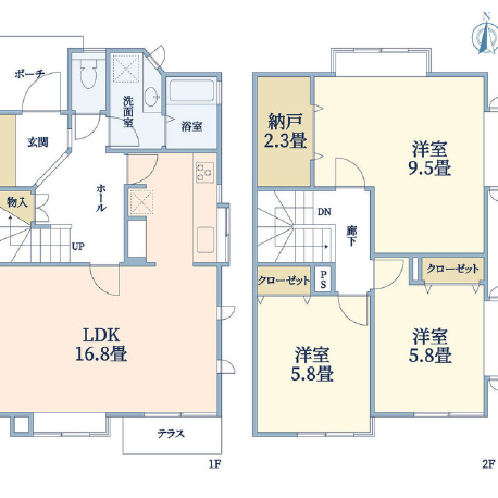 2Fには寝室やワークスペースなど、生活スタイルに合わせた使い分けて使える個室が3部屋。
