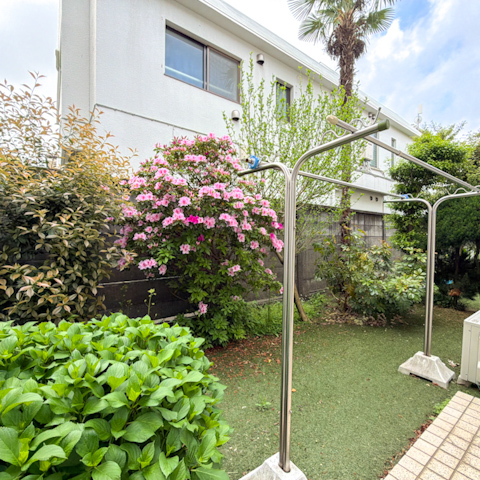庭先の植栽が程よく視線を遮りながら、季節の移ろいを伝えてくれます。