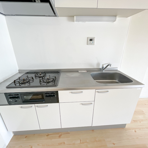 キッチンはゆったり3口コンロにグリル付き。