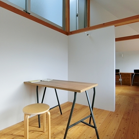 採光面の大きい窓と傾斜面のある高い天井にも窓があって