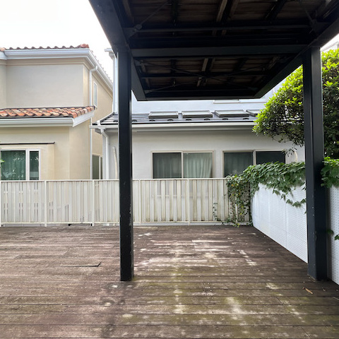 今回ご紹介のお部屋の魅力はなんといっても広いウッドデッキのお庭。