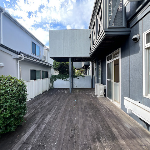 1階部分の3世帯は全てにこのウッドデッキがあり、植物を育てたり、テーブルとチェアを置いたりと皆様思い思いに楽しんでいるご様子です。