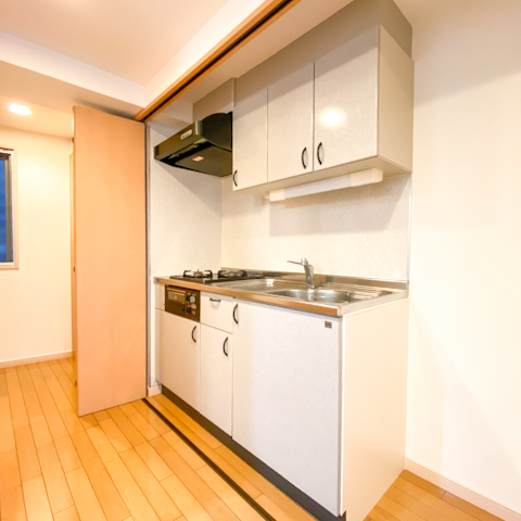 キッチンは廊下側にあり、あまり使わないって方は隠すことも可能。