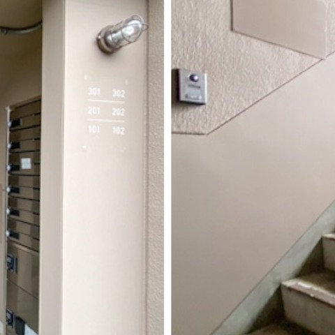 階段入口部分にはポストと宅配ボックスが付いてます。