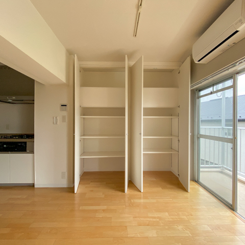 リビングと洋室2部屋にはエアコンと収納もアリ。