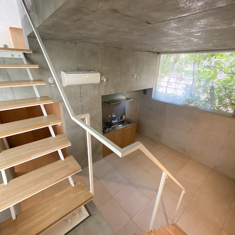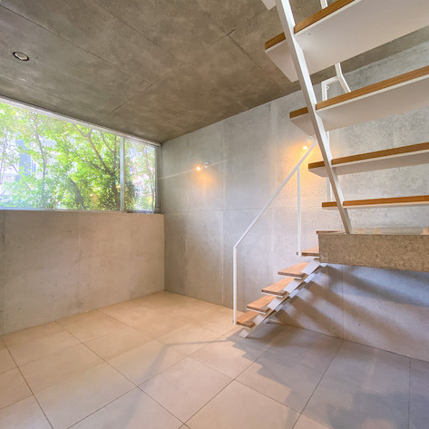 通常圧迫感を感じがちな地下のお部屋ですがこれだけ吹き抜けに