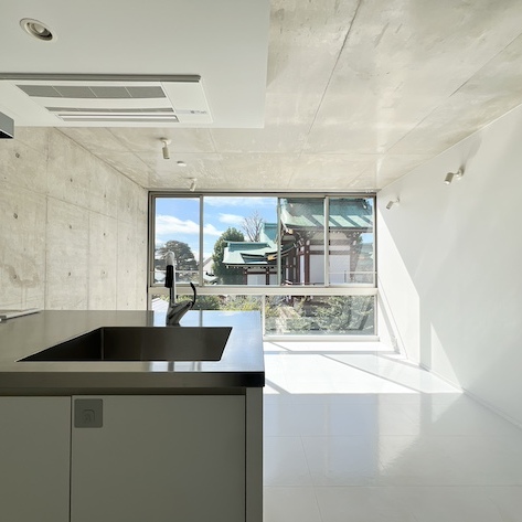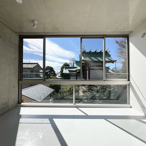 リビングの大きな窓から神社が拝めます。